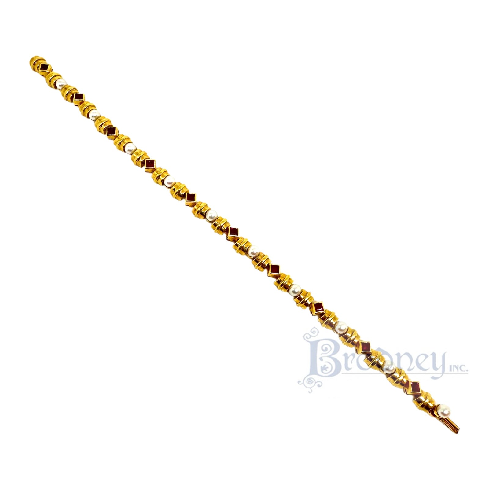 18 Kt Gold Ruby and Pearl Bracelet