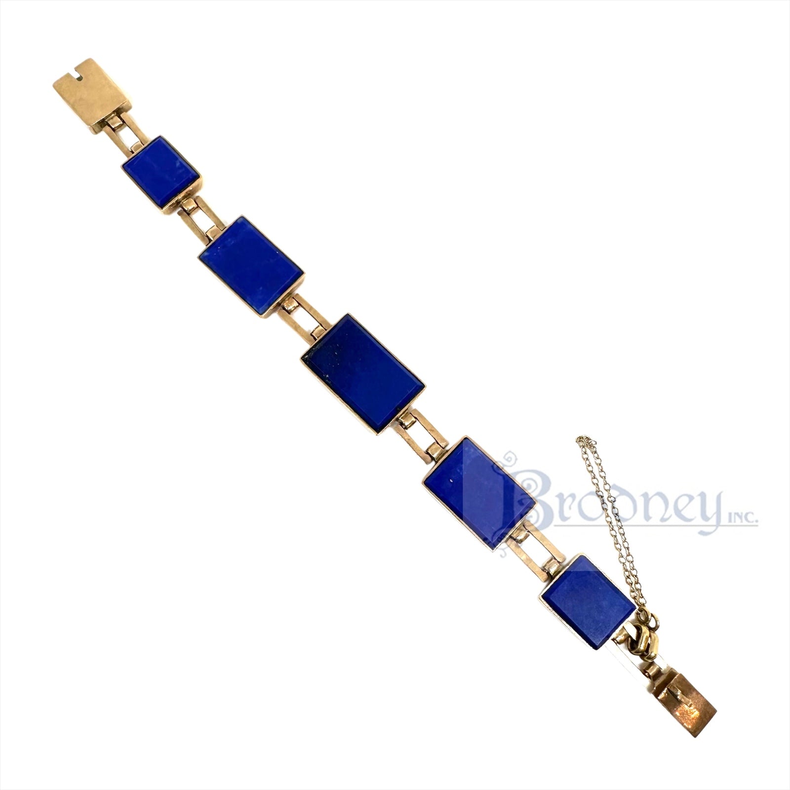 Late Art Deco 14 Kt Gold and Lapis Lazuli Bracelet